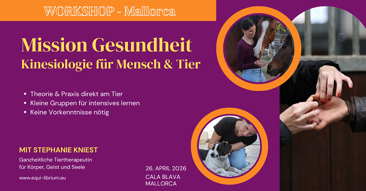 In diesem Workshop wirst Du lernen wie Du das Bio-Feedback deines Körpers mithilfe der Kinesiologie für dich und/oder deine Tiere nutzen kannst. Diese Methode erlaubt dir Stressreaktionen bzw. Blockaden im Körper zu identifizieren. So lassen sich mögliche Störfaktoren oder die Ursachen von Krankheiten & Beschwerden herausfinden.